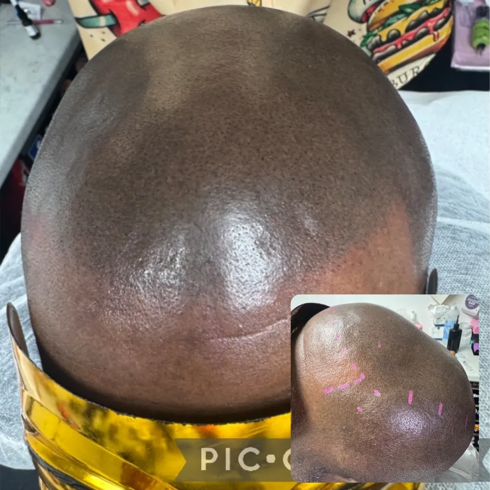 Of course! Some people call it SMP, others Scalp Micropigmentation, Hair Tattoo, Scalp Tattoo, or even Microblading of the scalp. Regardless of what you call it, we look at it as a collaborative effort between the artist and client. We will offer our professional advice on what hairline would look good on you but ultimately the choice is yours!